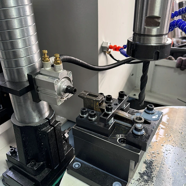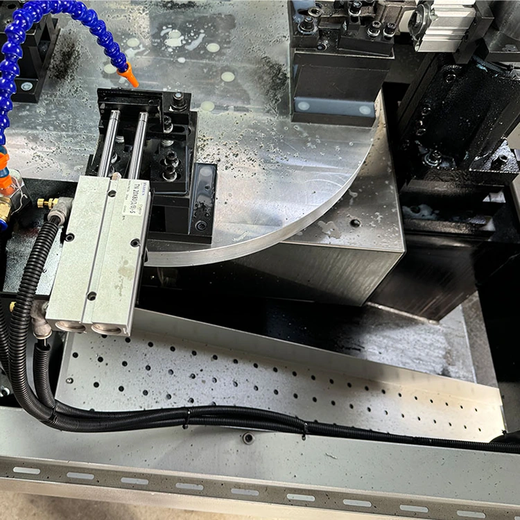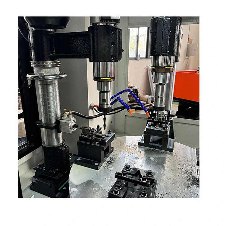 Le plateau tournant CNC à quatre axes est un poste de travail intelligent intégrant des processus de fraisage, de perçage, de taraudage et autres. Le noyau est une table rotative équipée d'un système CNC à quatre axes et de quatre broches d'usinage. Cela signifie que quatre pièces différentes peuvent être traitées simultanément ou séquentiellement, et que plusieurs processus ou pièces peuvent être réalisés en un seul cycle, réduisant considérablement le nombre de temps de serrage et le temps d'attente.