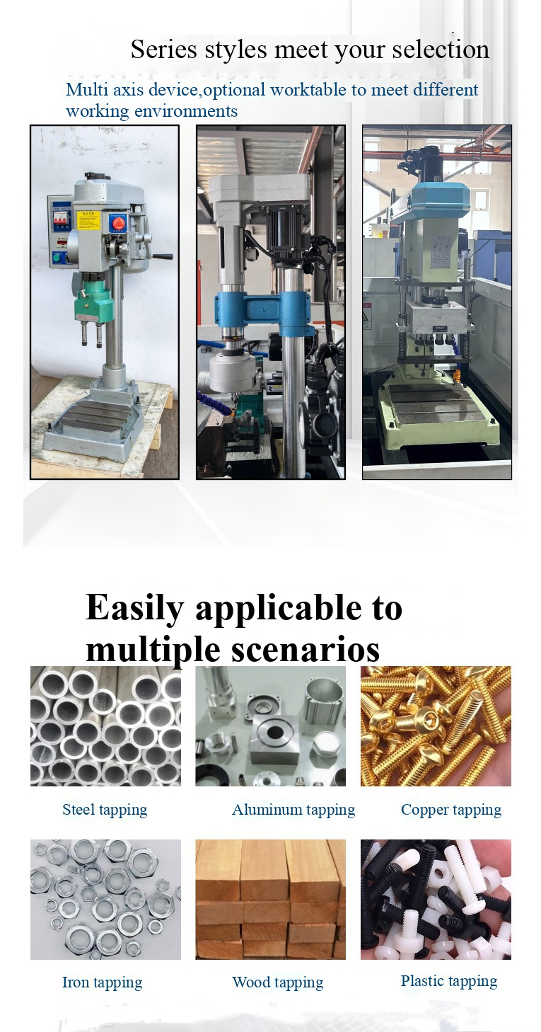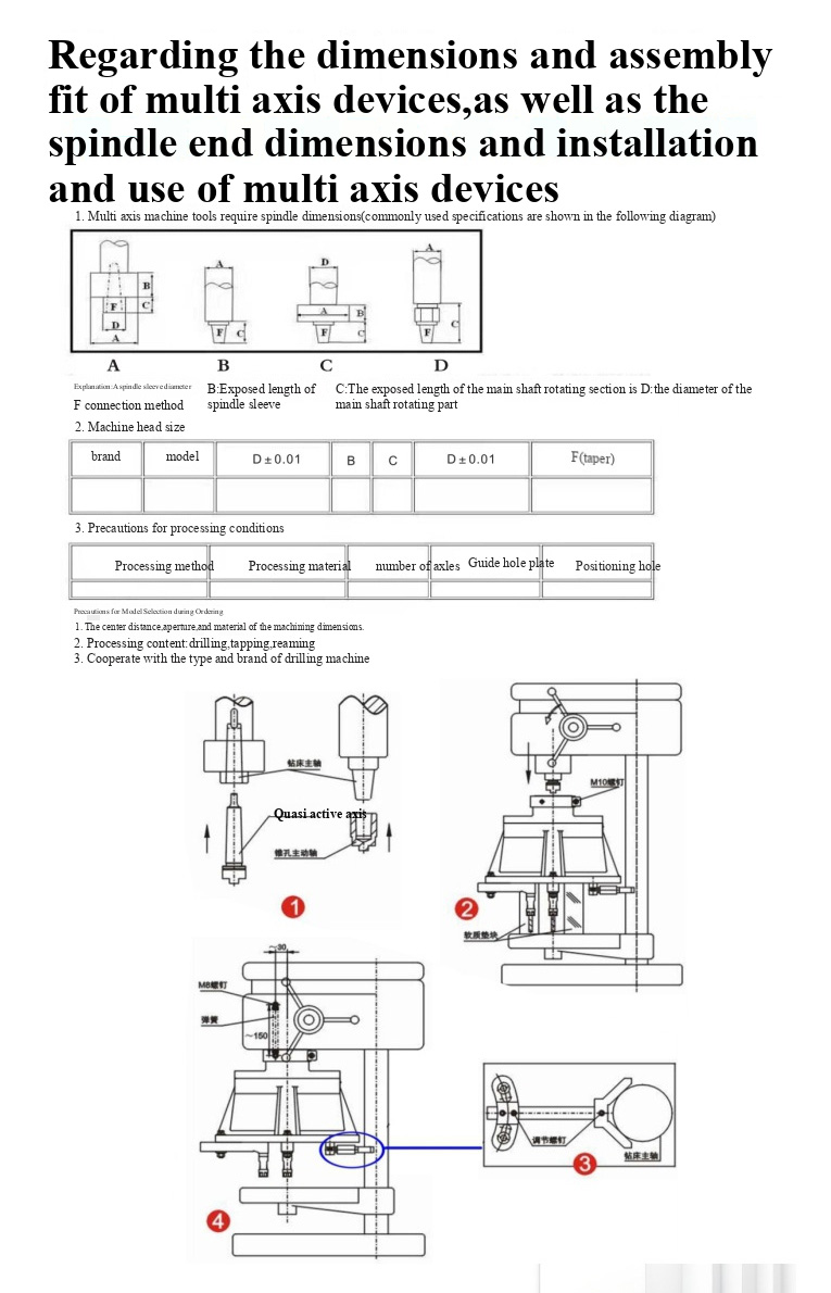 Une machine à forage à plusieurs axes courantes et une machine à forage commune (y compris les exercices de banc, les forets verticaux, les exercices radiaux, les machines à forage et le fraisage, les connexions moteurs directes, les têtes d'alimentation, etc. peuvent toutes être installées) peuvent traiter plusieurs ou même dix à vingt trous ou threads à la fois tant que la puissance est suffisante, ce qui peut améliorer considérablement l'efficacité de production et de traitement de la ponction ou du forage
